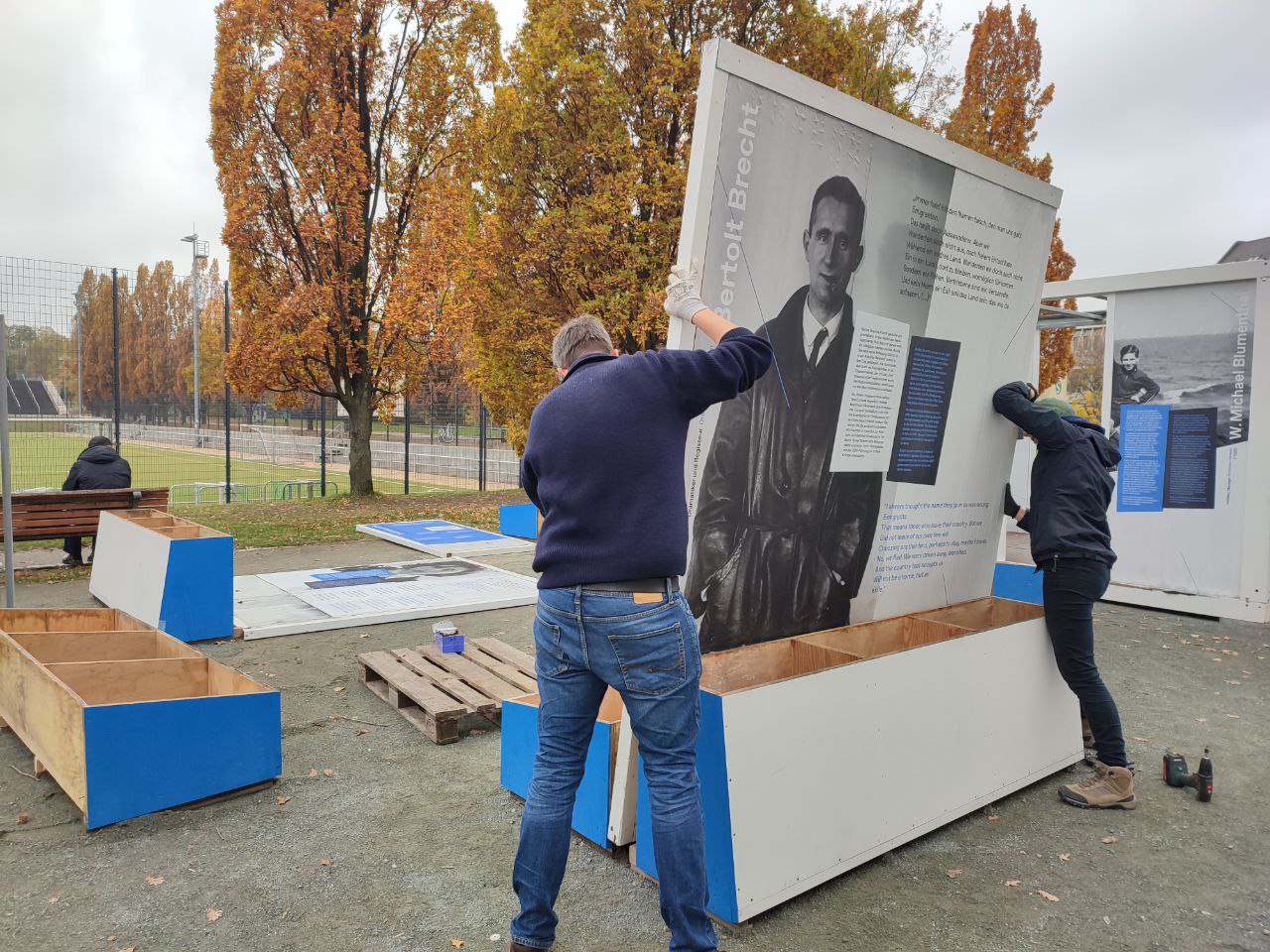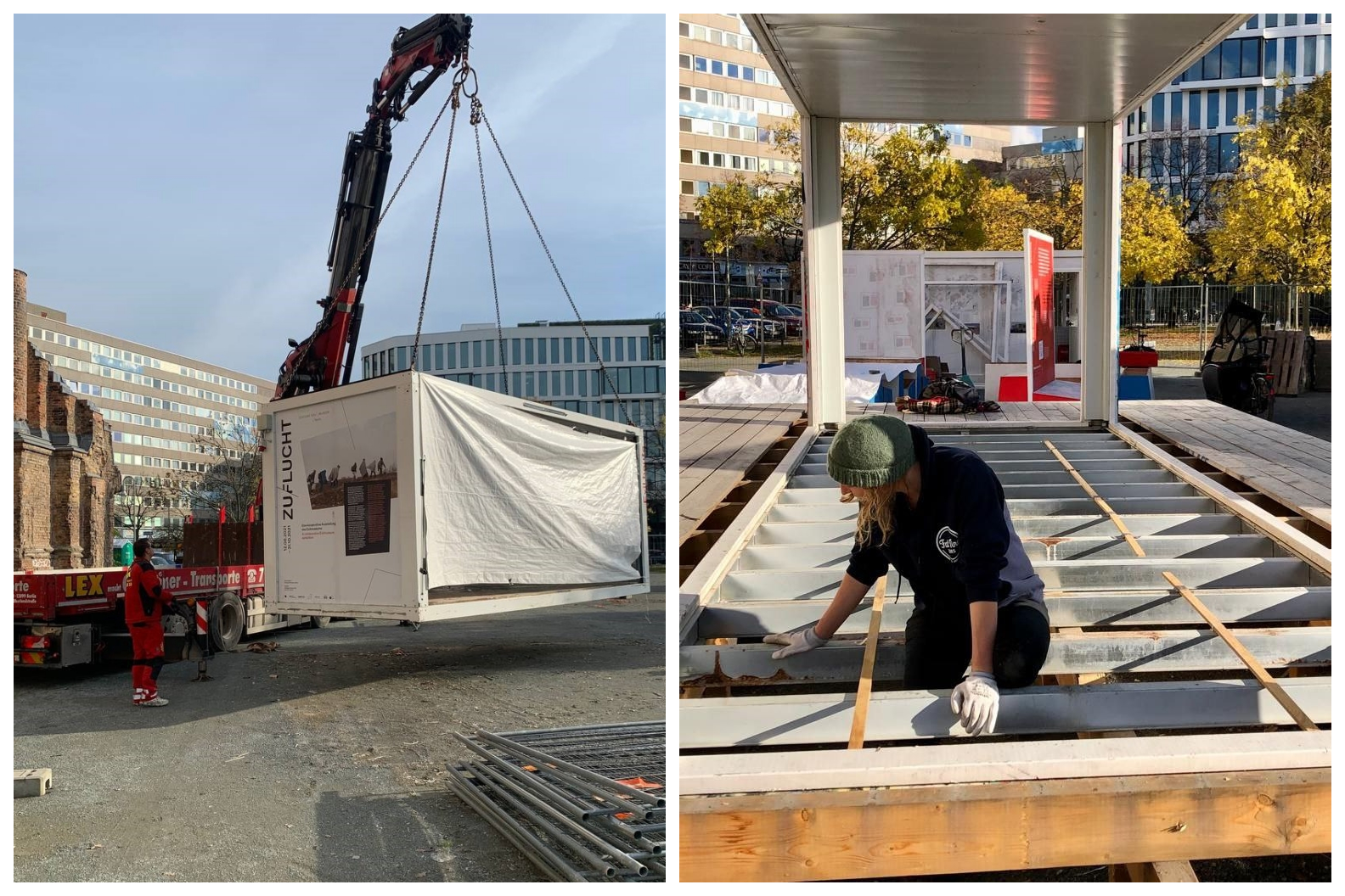 Einst Wohnstätte für geflüchtete Familien in Berlin, dann Ausstellungsarchitektur am Anhalter Bahnhof: Nun ziehen die Container weiter. Für fast alle Ausstellungselemente haben wir ein neues Zuhause gefunden, um eine sinnvolle Nachnutzung sicherzustellen. Unsere Bühne wird künftig bei der Bauhütte Kreuzberg zu finden sein, andere Container auf dem Dragonerareal oder beim Jugendclub Buckow. Die Hochbeete wurden der benachbarten Clara Grunwald-Schule vermacht.