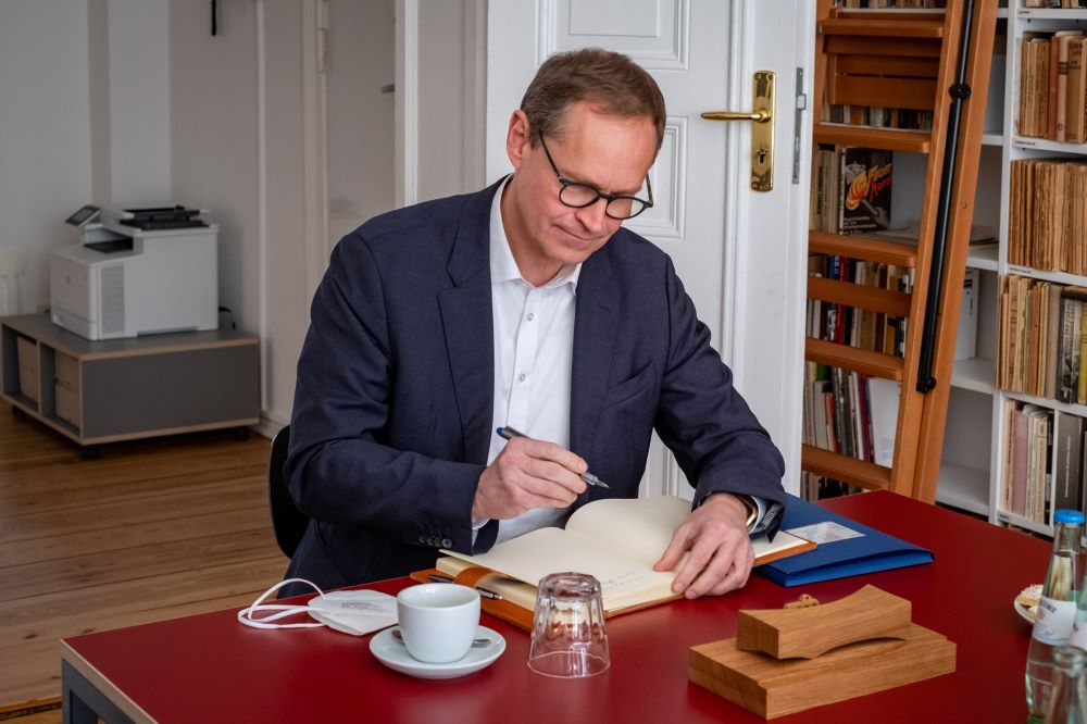 Am Freitag, den 23.4. durften wir den Regierenden Bürgermeister von Berlin in unserem Büro begrüßen. Michael Müller informierte sich bei Gründungsdirektor Christoph Stölzl und Geschäftsführerin Meike-Marie Thiele über den Planungsstand des Neubaus am Anhalter Bahnhof und die inhaltliche Ausrichtung des Museums. Nach dem 90-minütigen Treffen nannte er das Exilmuseum „eine großartige Idee“, die „viele Menschen begeistern wird“.