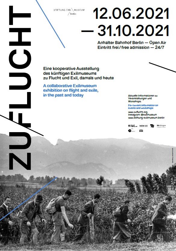 ZU/FLUCHT is an outdoors exhibition on the path leading to the Exilmuseum, which will be built in the next few years at Anhalter Bahnhof. The exhibition presents the future museum and its focus of interest. It deals not only with the fate of