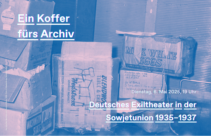 The evening is dedicated to German-language theatre in exile in the Soviet Union, the actors, stages, performances and audience reactions. The objects brought along shed light on the imponderables on location, the improvisational talent of the theatre ensembles as well as the end of these theatre projects in 1937.
